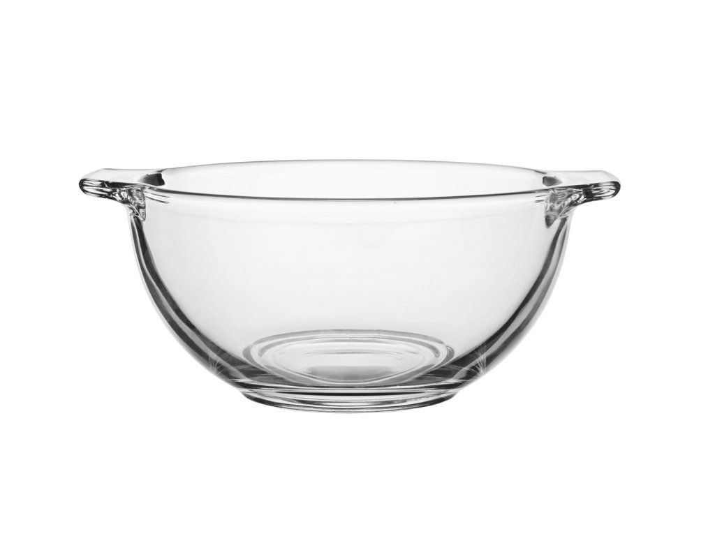 Skleněná miska na bujón je vyrobena z tvrzeného skla, odolného vůči poškrábaní a nárazům. Je vybavena dvěma úchyty. Použití je univerzální, výhodou je jednoduchá údržba, je možné mýt misku v myčce. Objem misky je 430ml, celková výška 6 cm, průměr 14 cm.