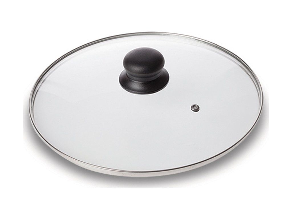 - Nerezový ochranný lem: Pevně obepíná sklo, chrání ho před nárazy a zajišťuje, že poklička přesně dosedne na okraj jakékoliv 28cm nádoby.
