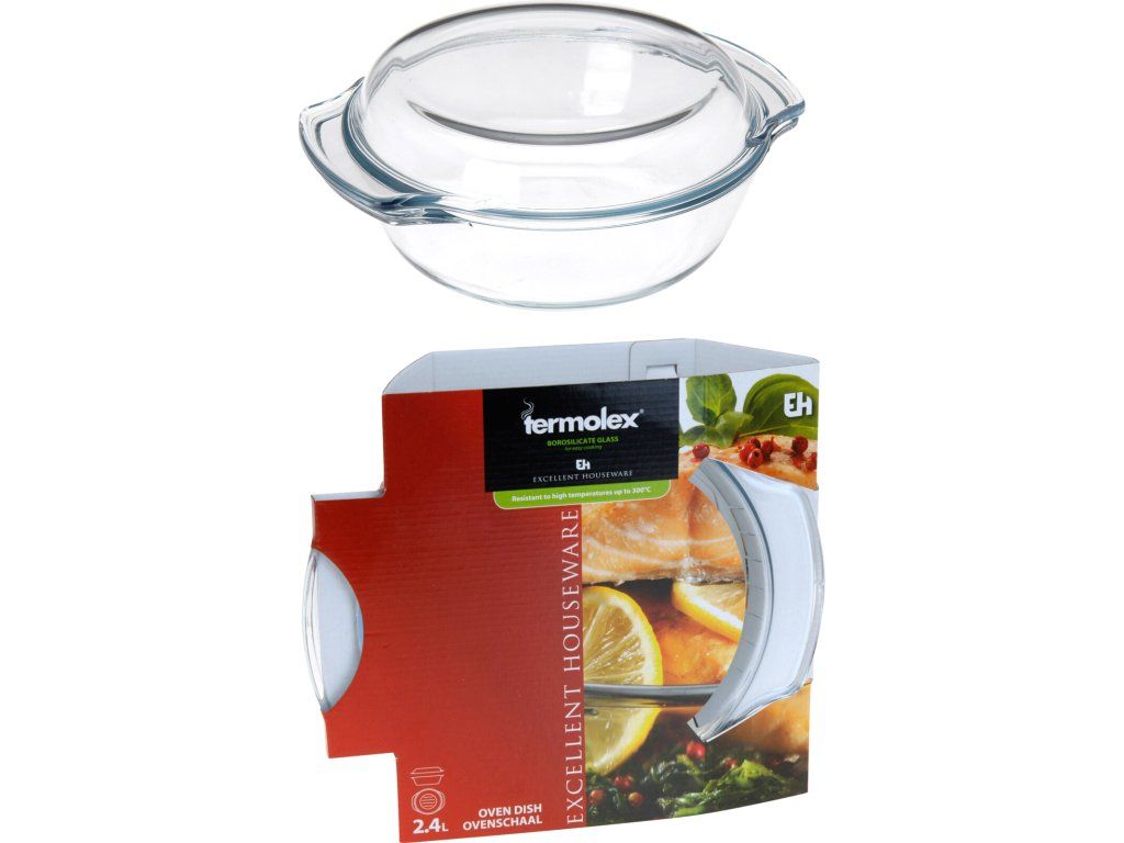 Kulatá zapekací mísa s víkem je vyrobená z varného skla, které patří v moderní kuchyni mezi žádané materiály. Je velmi odolné mechanicky i teplotně (odolnost +300/-40ºC). Výhodou je dlouhá životnost, hygienická nezávadnost (sklo je hladké a neporézní) a snadná údržba, mísu lze mýt v myčce nádobí. Rozměry: 27 x 24 x 9 cm