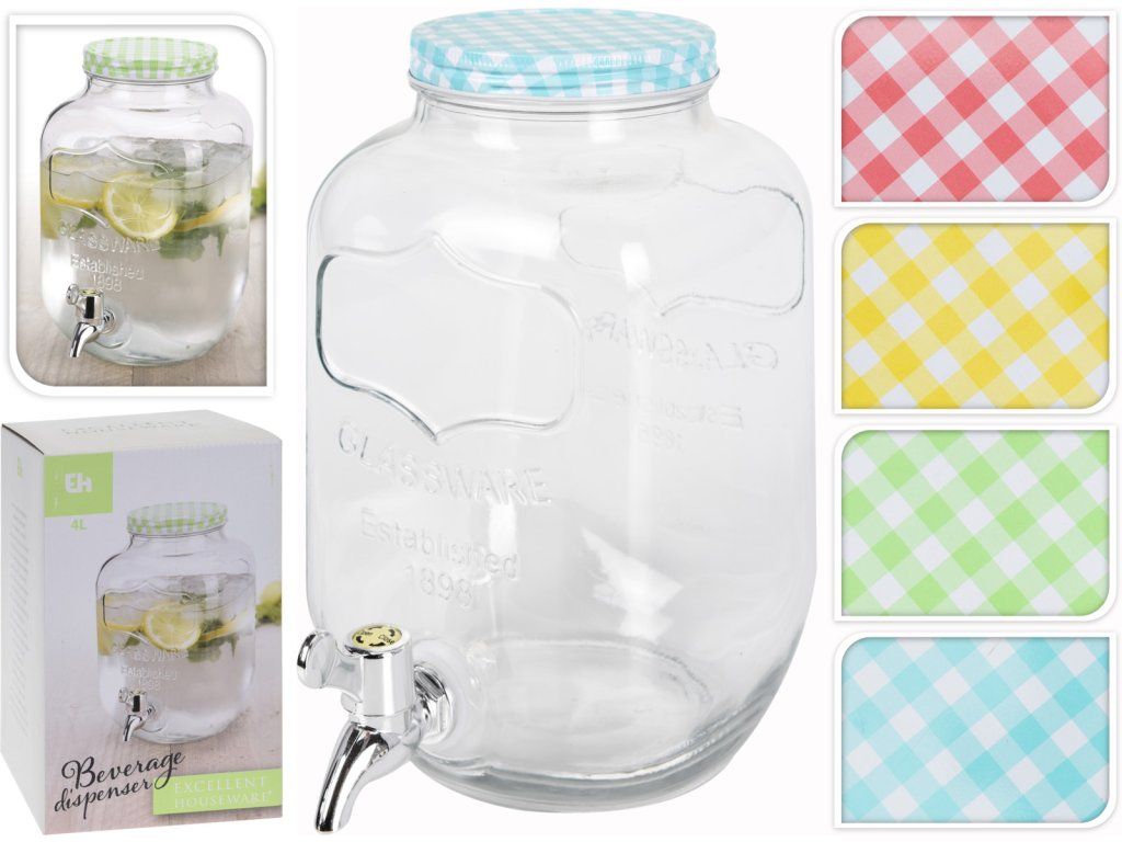 Skleněný zásobník na nápoje s kohoutkem 4 l