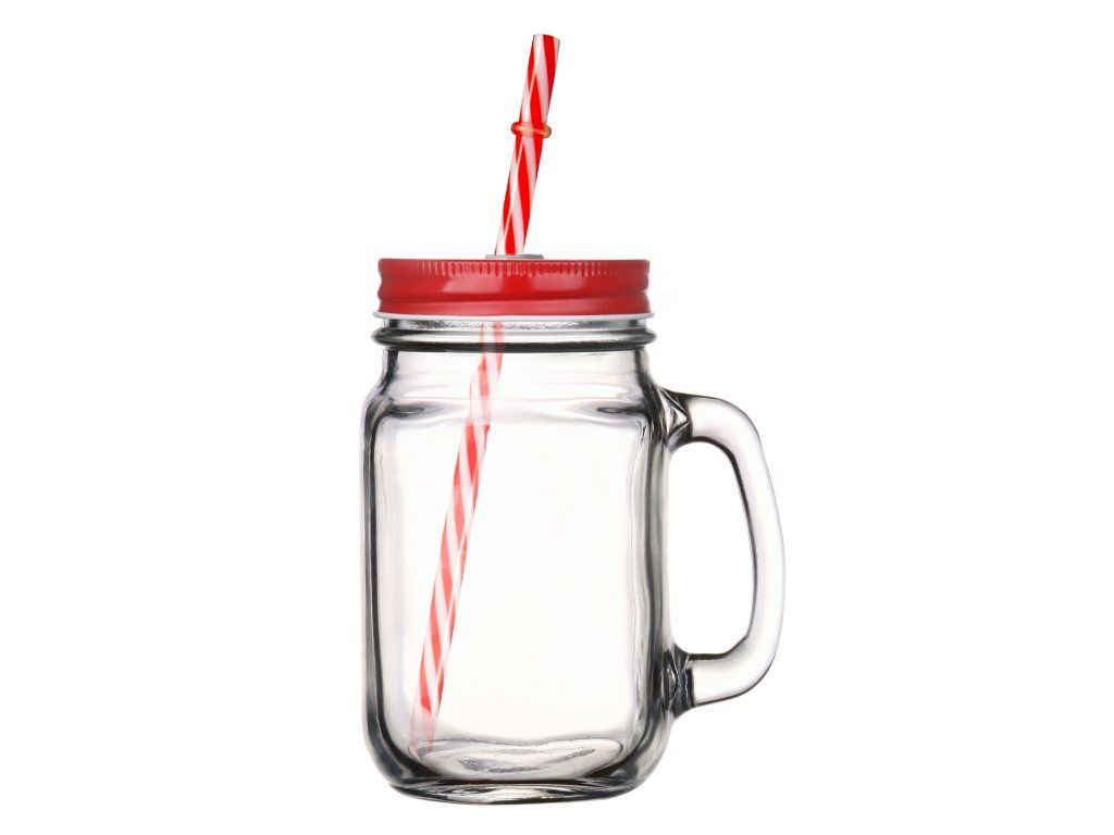 Praktická sklenice s víčkem a brčkem o objemu 400 ml skvěle poslouží pro letní osvěžení v podobě domácí limonády, džusu a jiných nápojů. Rozměry: výška 13 cm, průměr 7 cm, brčko je vyrobeno z kvalitního pevného plastu a opatřeno bezpečnostní zarážkou bránící vytažení z víčka.