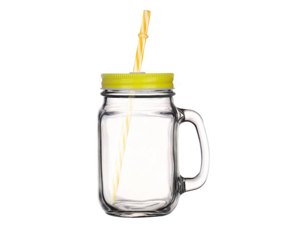 Praktická sklenice s víčkem a brčkem o objemu 400 ml skvěle poslouží pro letní osvěžení v podobě domácí limonády, džusu a jiných nápojů. Rozměry: výška 13 cm, průměr 7 cm, brčko je vyrobeno z kvalitního pevného plastu a opatřeno bezpečnostní zarážkou bránící vytažení z víčka.
