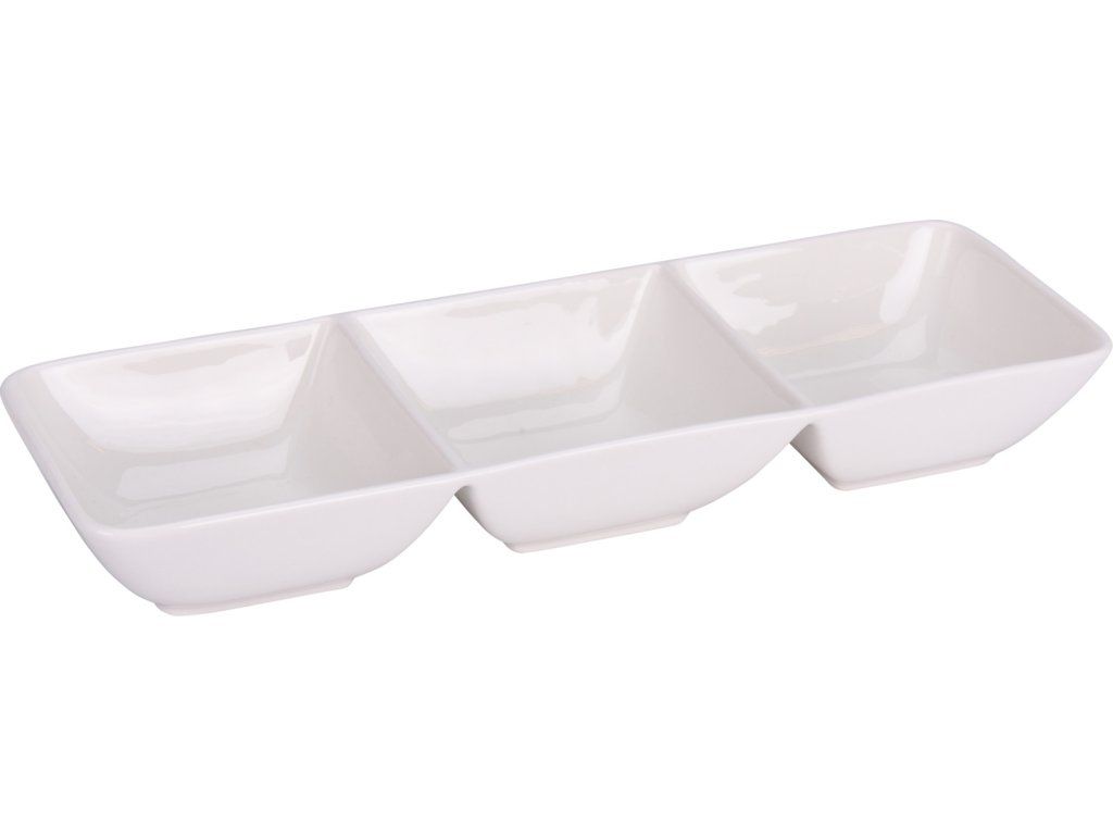 Servírování? S tímto kouskem už Vás žádná návštěva nikdy nezaskočí. Stačí jen nasypat oříšky či chipsy a pohoštění je na světě. Trojdílná servírovací miska se se svým jednoduchým designem stane ozdobou Vaší domácnosti. Rozměry 29,5 x 9,5 cm, 4,5 cm