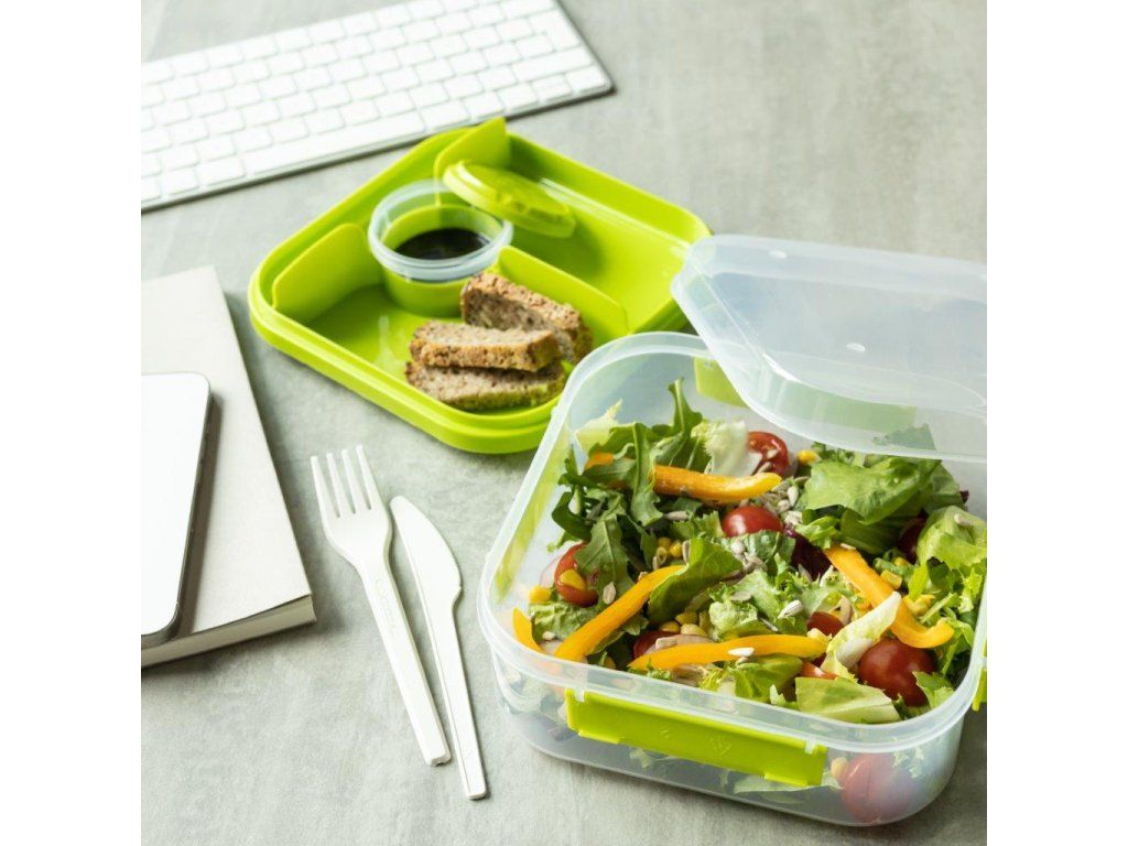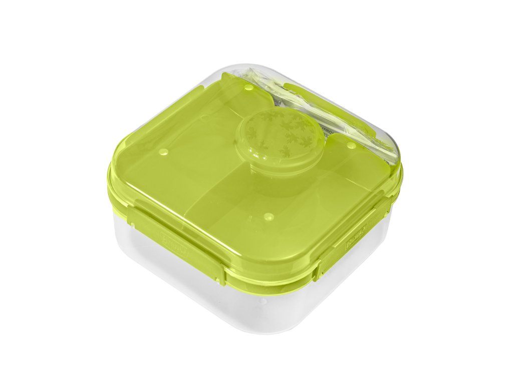 Vícevrstvý obědový box do školy nebo do práce. Suroviny na salát mohou být uloženy ve spodní části produktu. Střední část je rozdělena na části, kam můžete uložit chléb a příbory. Sada obsahuje šroubovací nádobu na olej nebo dresink, pražená semínka apod., kterou můžete použít těsně před konzumací. Víko nádoby lze použít jako talíř. LIDO LUNCH BOX je skvělý produkt, díky kterému si můžete vzít chutné, výživné pokrmy do práce nebo do školy.