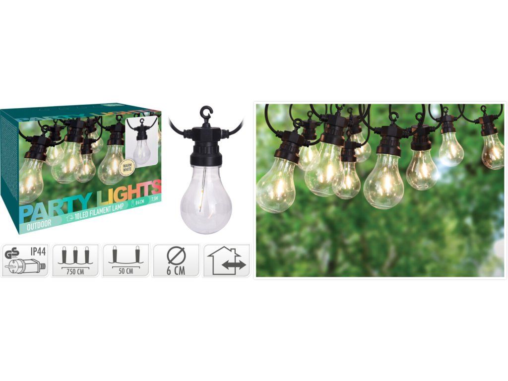Pomůže zlepšit náladu a dá se jej použít na více způsobů. Instalace je velice snadná, lze jej zavěsit, pověsit pomocí praktických háčků, které jsou po stranách žárovek nebo omotat. Použití světelného řetězu je vhodné za každého počasí, je totiž vyroben podle IP44 standardu, který zajišťuje vysokou úroveň odolnosti. Zkrášlete svou terasu, balkón nebo interiér a užijte si zářivosti ambientního osvětlení. Chcete mít stylově osvětlenou terasu, pergolu, balkon anebo jen čelo postele? Pořiďte si tento zajímavý řetěz se žárovkami se svítícím drátem uvnitř. Díky svému krytí může být použit i venku pod střechou.