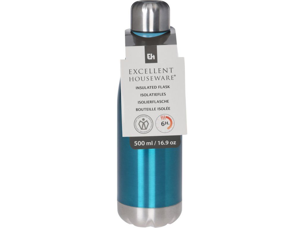 Krásná termoska v elegantní barvě o objemu 500 ml je vyrobena z broušené nerezové oceli. Termo lahev Vám dlouho udrží teplotu nápoje (až 6 hodin) a stane se pěkným doplňkem. Nedoporučujeme používat v mikrovlnné troubě a mýt v myčce na nádobí. Výška termosky - 26,5 cm, průměr dna 6,5 cm. Barevné provedení - modrá