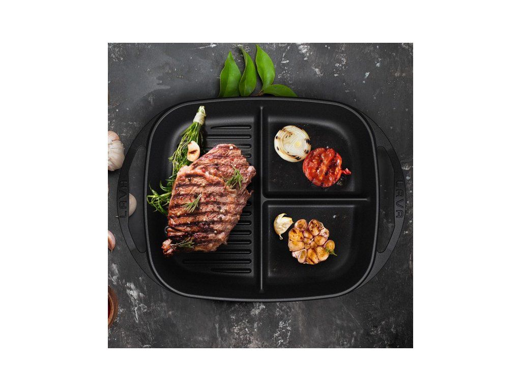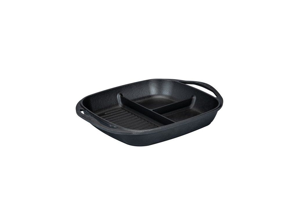 Představivosti a kreativitě se meze nekladou. Tento praktický litinový pekáček je rozdělený na tři pole s (2x hladký povrch, 1x grilovací), díky kterým můžete zároveň připravovat fazole, vejce a nebo šunku a slaninu. Litinový pekáček o rozměrech 26x30 cm je vyroben z kvalitní litiny, která má opravdu dlouhou životnost, perfektně vede teplo, je odolná proti korozi, poškrábání a odštípnutí. Plotýnku můžete používat na všech typech grilů a vařičů včetně indukce, je vhodná i pro zapékání v troubě a stane se tak praktickým pomocníkem ve Vaší kuchyni. Díky skvělým tepelným vlastnostem litiny můžete pokrmy z plotýnky rovnou servírovat, jídlo udržíte dlouho teplé. Litinové nádobí je oblíbené mezi šéfkuchaři, protože skvěle drží teplo a je prakticky nerozbitné.