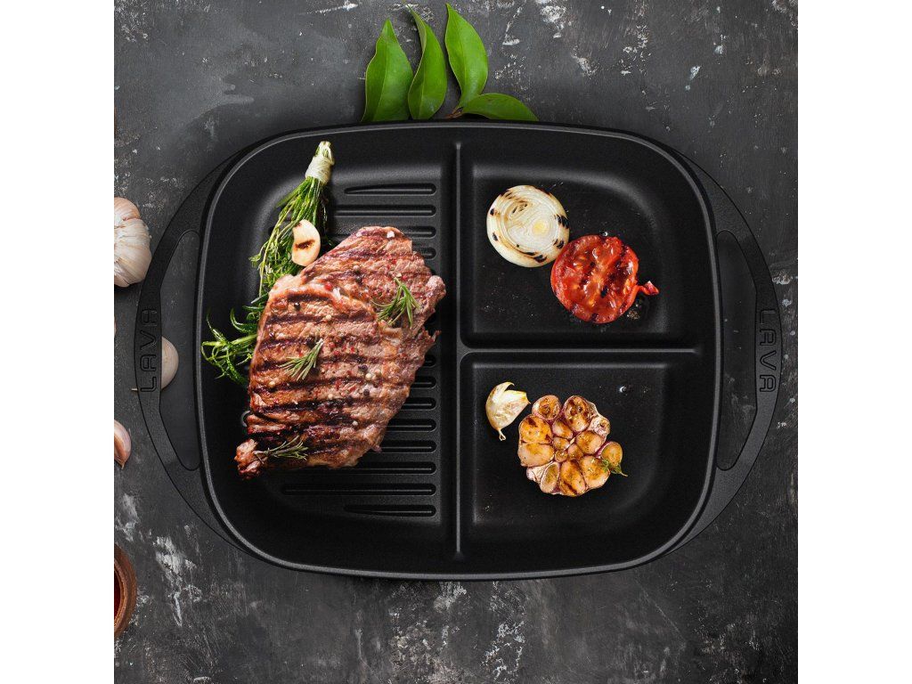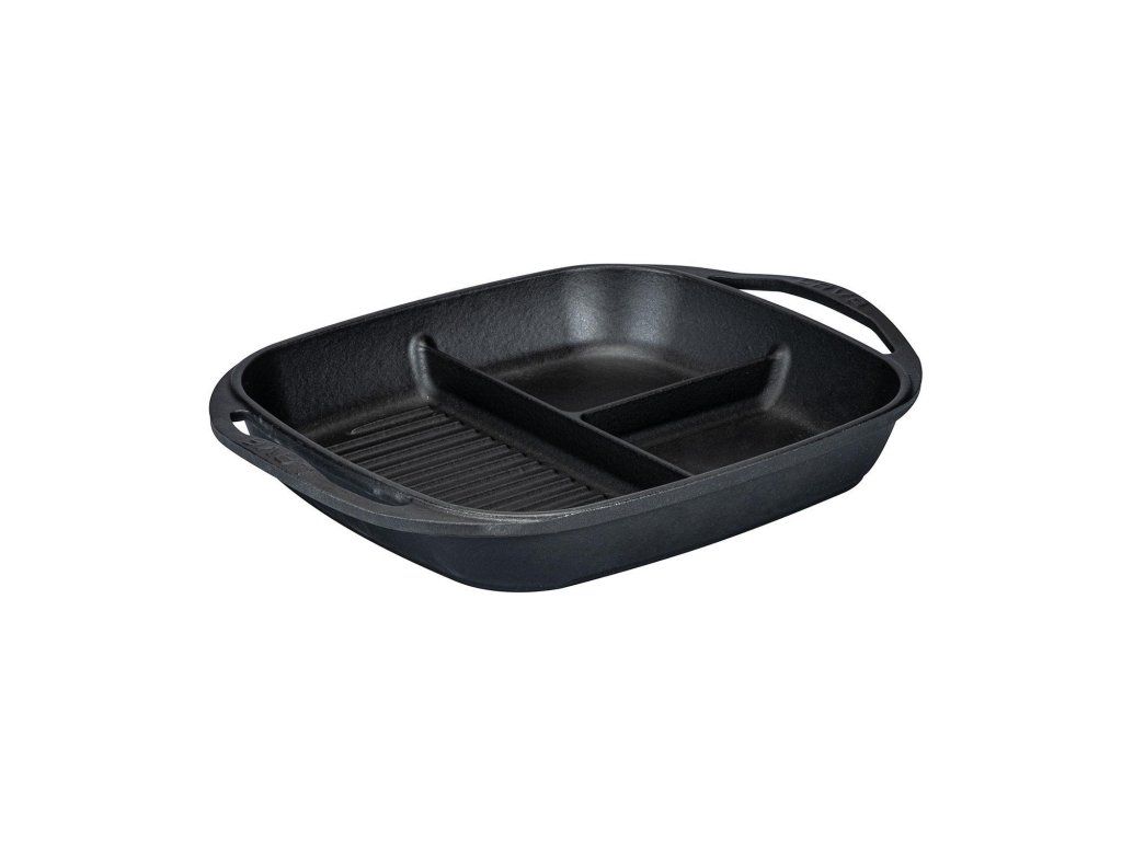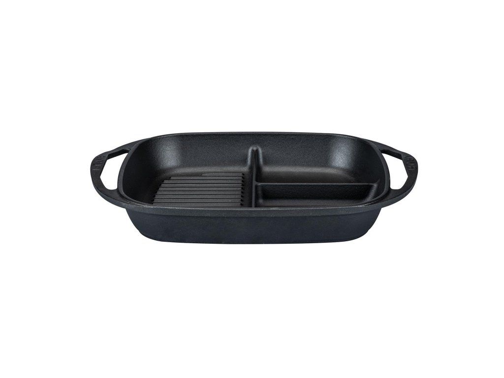 Představivosti a kreativitě se meze nekladou. Tento praktický litinový pekáček je rozdělený na tři pole (2x hladký povrch, 1x grilovací), díky kterým můžete zároveň připravovat fazole, vejce a nebo šunku a slaninu. Litinový pekáček o rozměrech 26x30 cm je vyroben z kvalitní litiny, která má opravdu dlouhou životnost, perfektně vede teplo, je odolná proti korozi, poškrábání a odštípnutí. Plotýnku můžete používat na všech typech grilů a vařičů včetně indukce, je vhodný i pro zapékání v troubě a stane se tak praktickým pomocníkem ve Vaší kuchyni. Díky skvělým tepelným vlastnostem litiny můžete pokrmy z plotýnky rovnou servírovat, jídlo udržíte dlouho teplé. Litinové nádobí je oblíbené mezi šéfkuchaři, protože skvěle drží teplo a je prakticky nerozbitné.