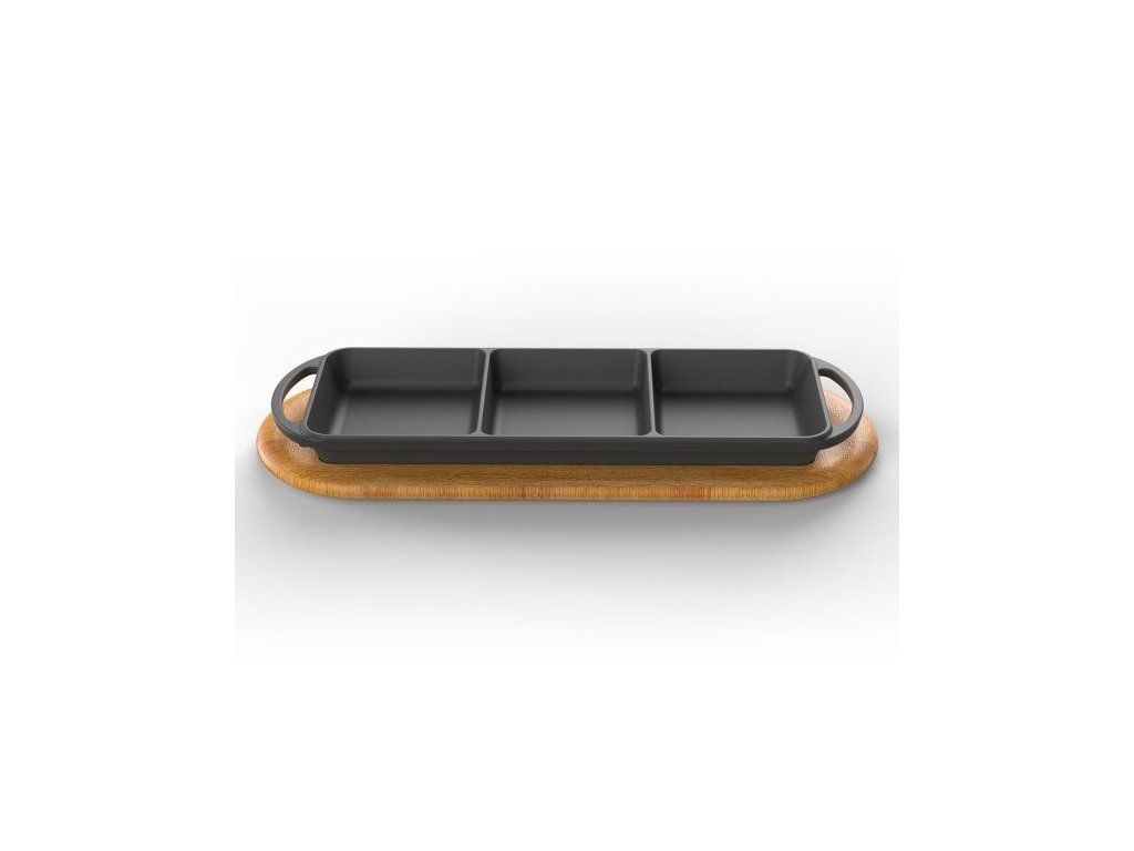 Představivosti a kreativitě se meze nekladou. Tato elegantní litinová plotýnka je rozdělená na tři pole, díky kterým můžete zároveň připravovat fazole, vejce a nebo šunku a slaninu. Má rozměry 12x33 cm a je vyrobena z kvalitní litiny, která má opravdu dlouhou životnost, perfektně vede teplo, je odolná proti korozi, poškrábání a odštípnutí. Plotýnku můžete používat na všech typech grilů a vařičů včetně indukce, je vhodná i pro zapékání v troubě a stane se tak praktickým pomocníkem ve Vaší kuchyni. Díky skvělým tepelným vlastnostem litiny a praktickému dřevěnému podstavci můžete pokrmy z pánve rovnou servírovat, jídlo tak zůstane dlouho teplé. Litinové nádobí je oblíbené mezi šéfkuchaři, protože skvěle drží teplo a je prakticky nerozbitné.